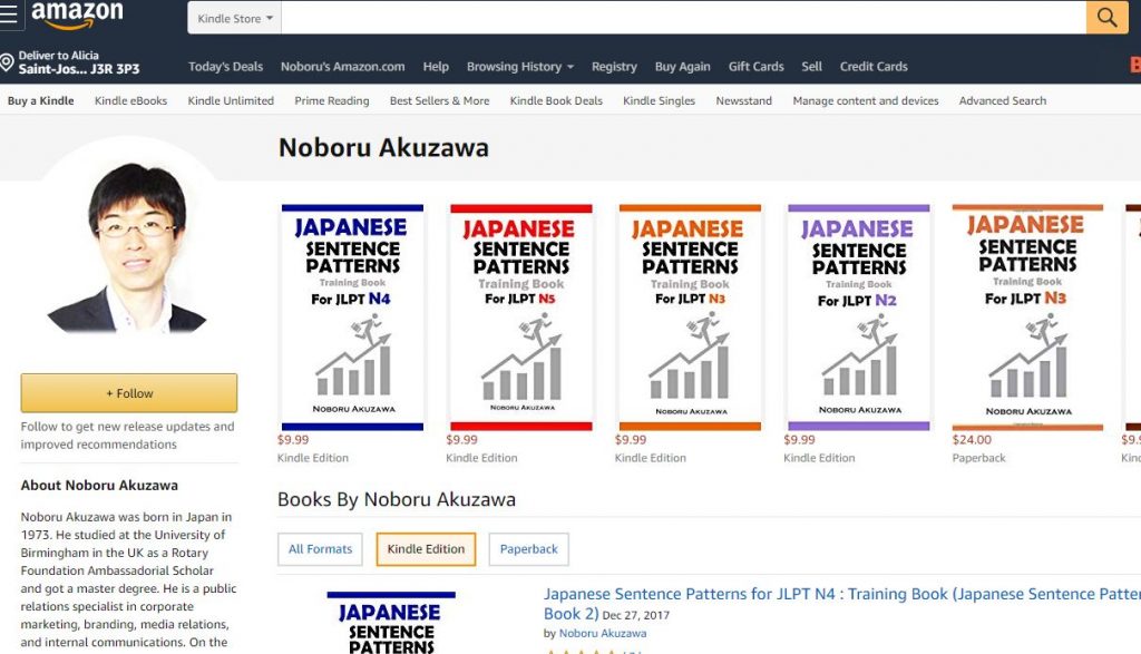 Based on my original and effective learning methods, I created original Japanese language textbooks titled “Japanese Sentence Patterns Training Book for JLPT Nx”. There are 5 ebooks and 7 paperbacks.
